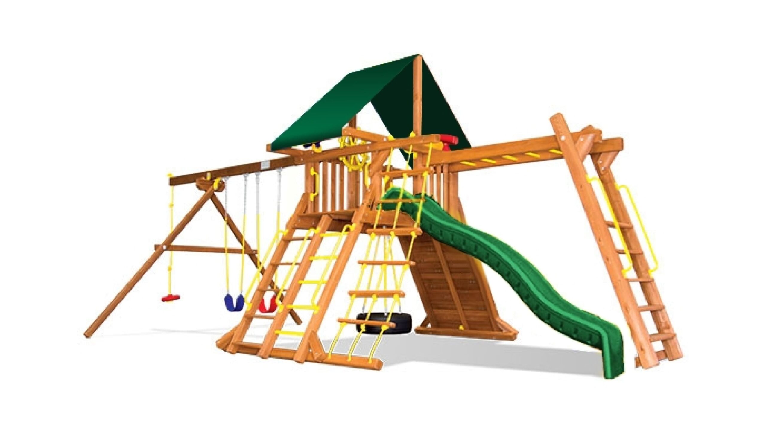 Цельный брус американского и канадского кедра, прошедший десятиступенчатую термообработку фирменными влагоустойчивыми антисептиками. Пластик первой категории качества, нетоксичный, не имеет неприятного запаха и полностью безопасен для детей. Металлические цепи покрыты винилом в местах, где ребёнок может схватить их руками. Бинокли, телескопы и другие аксессуары детализированы и также сделаны из прочного пластика.Комплектация
