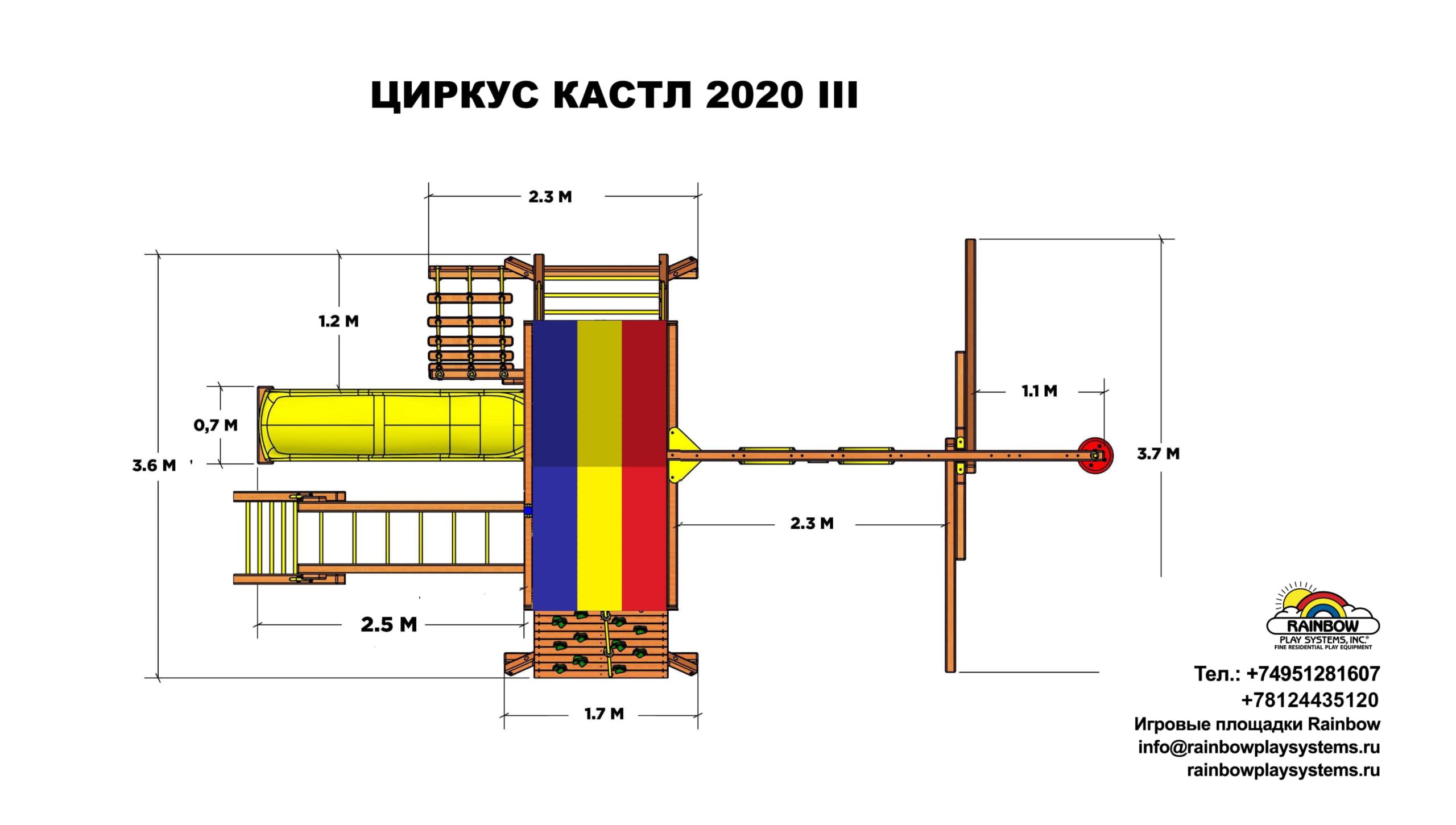 Деревянная площадка Циркус Кастл III Тент подойдет для семьи из 2-3 детей. Данный комплекс имеет рукоход для активных и подвижных детей. Также в комплектацию входят все необходиме игровые элементы: горка с двойной волной, 2 качели, диск-тарзанка на канате, скалодром, качель шина, смотровая вышка с биноклем и телескопом. При изготовлении Циркус Кастл III Тент используется только прошедшее 10-ти ступенчатую обработку влагоустойчивыми антисептиками дерево, сорта кедр.