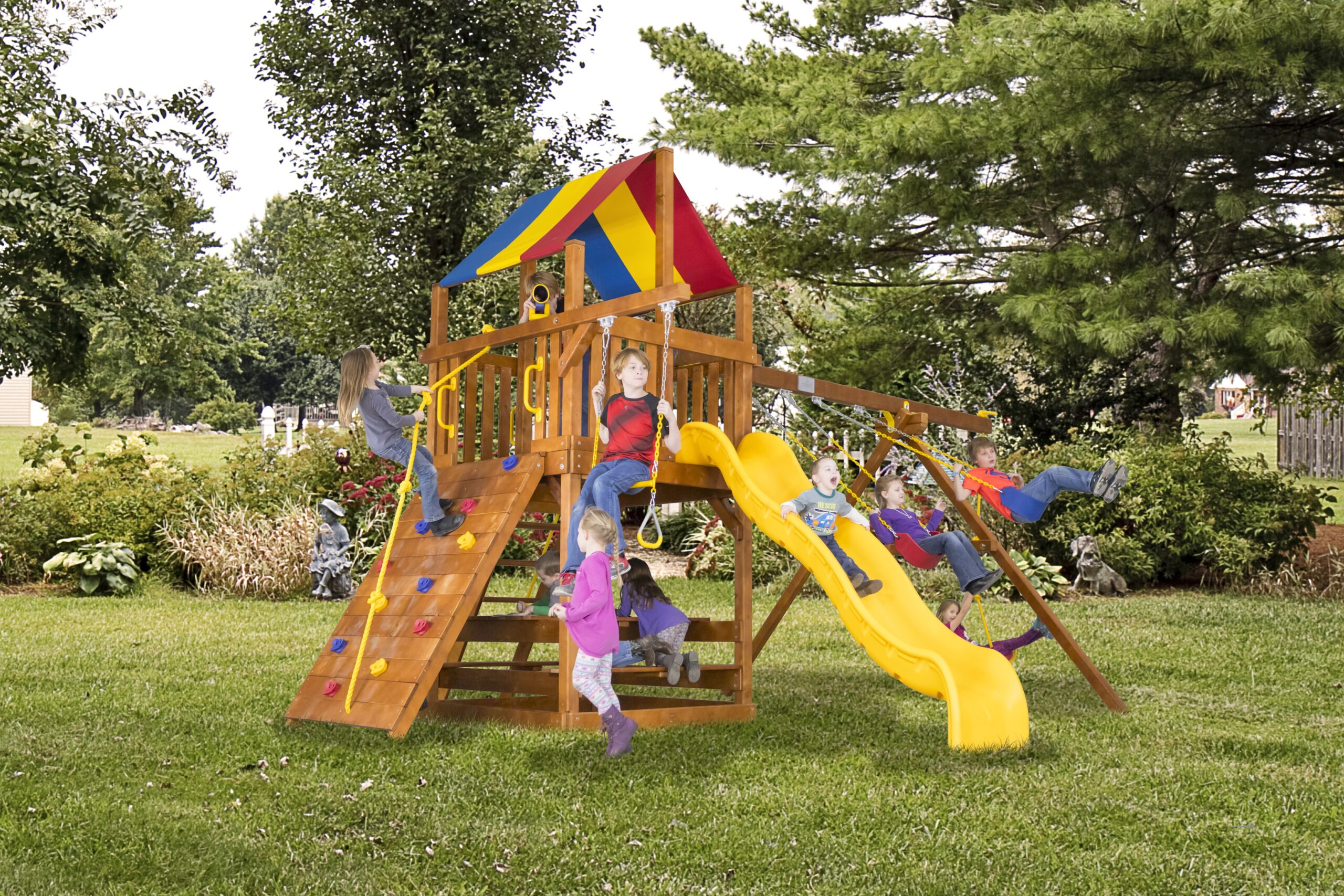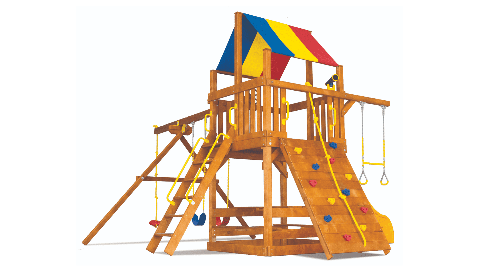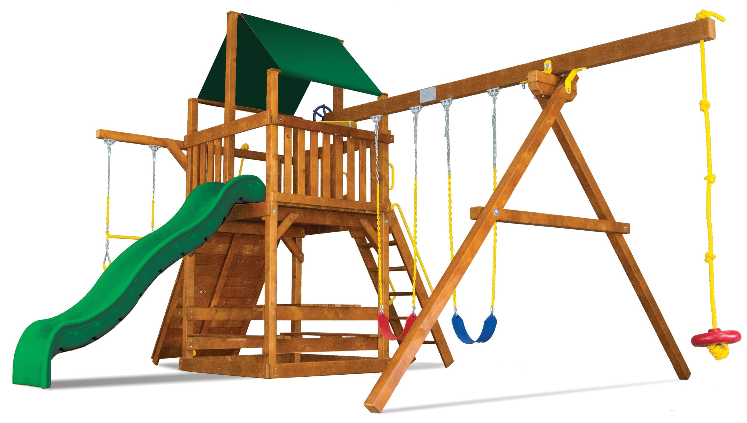 Цельный брус американского и канадского кедра, прошедший десятиступенчатую термообработку фирменными влагоустойчивыми антисептиками. Пластик первой категории качества, нетоксичный, не имеет неприятного запаха и полностью безопасен для детей. Металлические цепи покрыты винилом в местах, где ребёнок может схватить их руками. Бинокли, телескопы и другие аксессуары детализированы и также сделаны из прочного пластика.