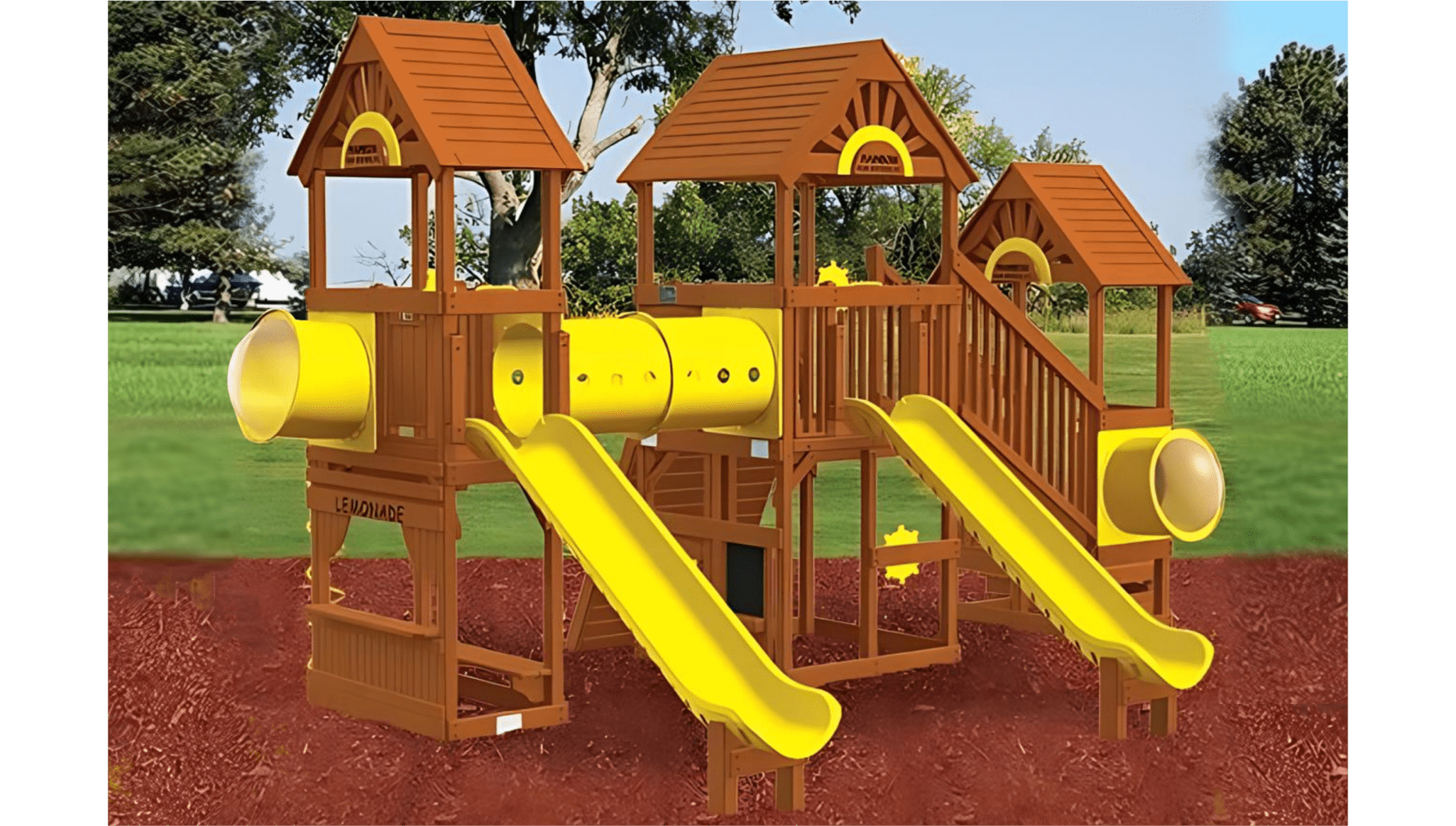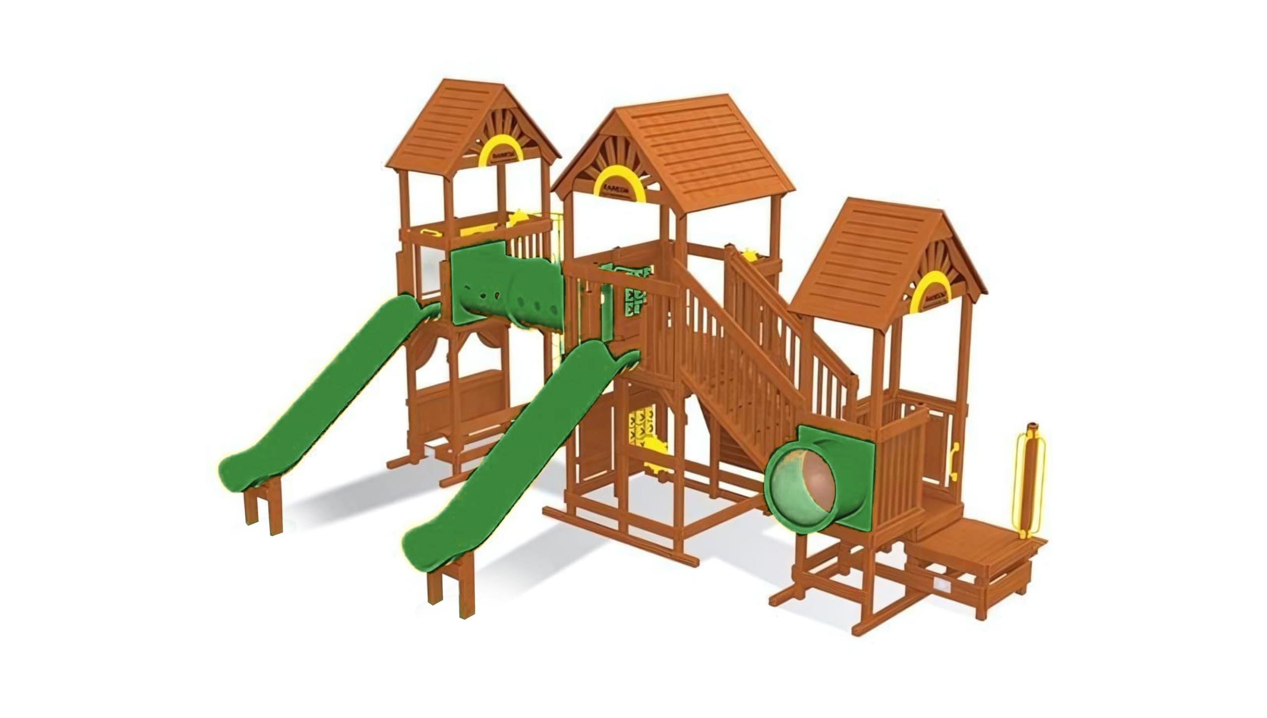 Цельный брус американского и канадского кедра, прошедший десятиступенчатую термообработку фирменными влагоустойчивыми антисептиками. Пластик первой категории качества, нетоксичный, не имеет неприятного запаха и полностью безопасен для детей. Металлические цепи покрыты винилом в местах, где ребёнок может схватить их руками. Бинокли, телескопы и другие аксессуары детализированы и также сделаны из прочного пластика.Комплектация