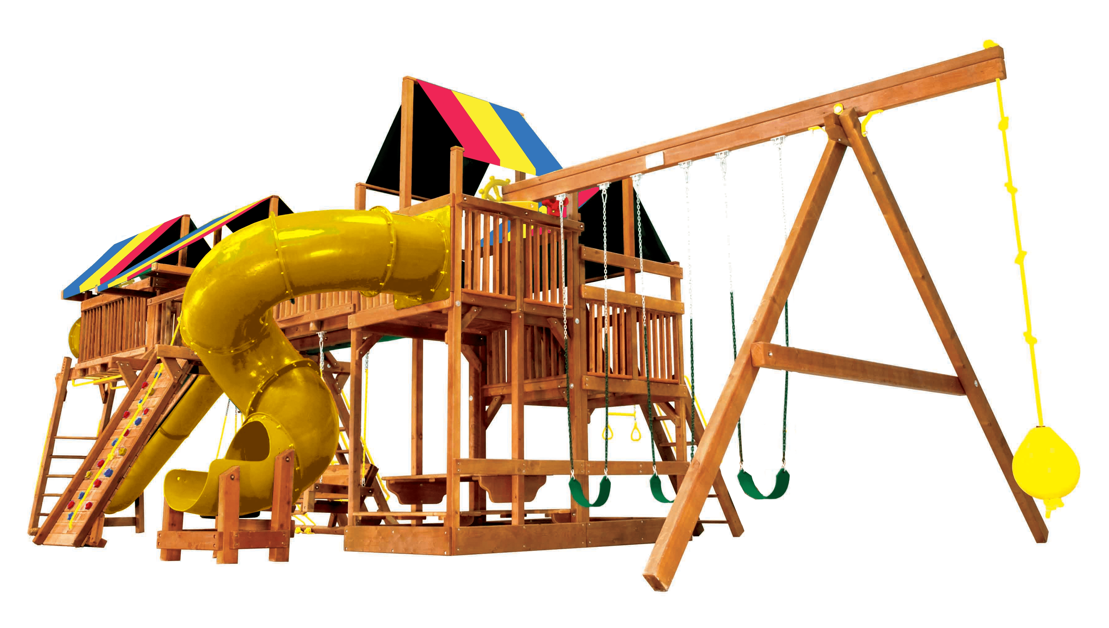 Детская игровая площадка Кинг Конг Дабл Вамми восхищает своей величественностью. Множество игровых зон: наблюдательные вышки, горки, пространство для лазания и огромное разнообразие качелей — дети будут в восторге! Такая игровая площадка будет гордостью любого загородного дома и точкой притяжения всех гостей, как маленьких, так и взрослых. Высота игровых платформ 2,19м, настоящая крепость для игр.