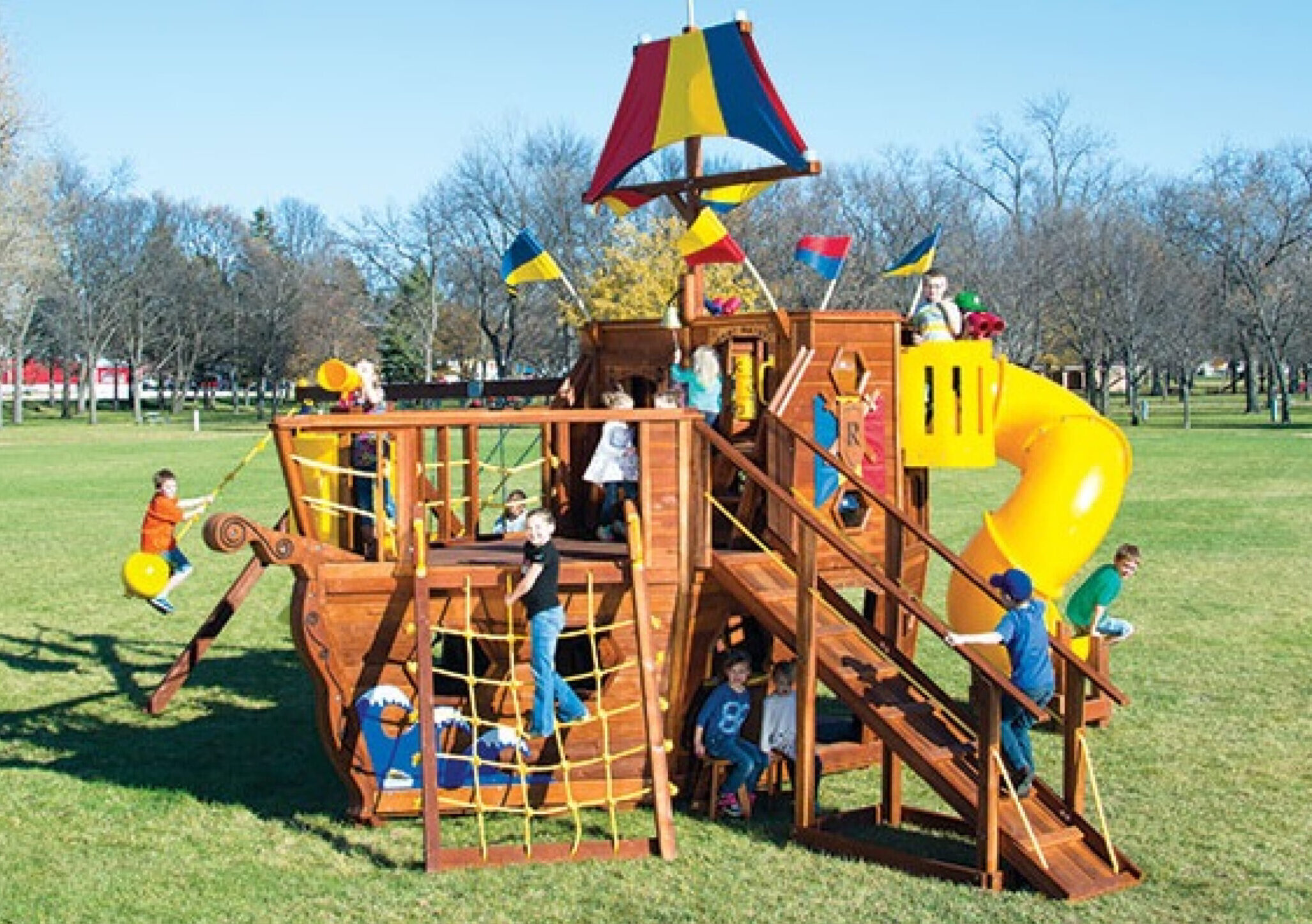 Детская площадка Корабль является эксклюзивной моделью во всей линейке продукции Rainbow Play Systems. Ее конструктив позволит детям почувствовать себя на волшебном судне, с каютой и палубами. Данная площадка отлично впишется в ландшафтный дизайн загородных домов. Она состоит из цельных блоков и имеет общий вес около 2 тонн. На этой площадке дети точно не заскучают, играть в капитана корабля всегда весело!