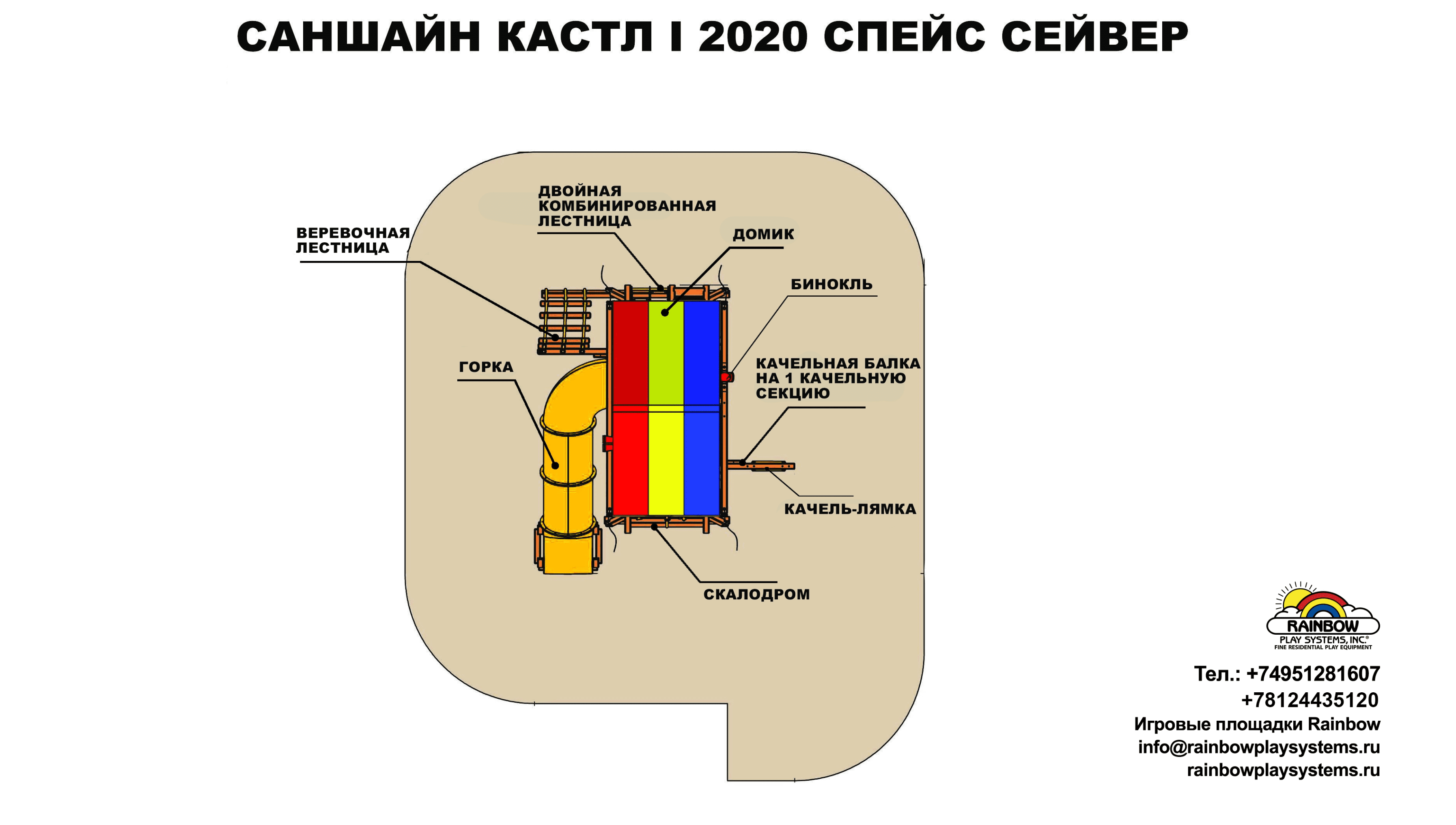 Саншайн СпейсСейвер подойдет тем, у кого на участке нет много места для установки детской площадки. Габаритные размеры комплекса всего 4м на 3,5м, при этом в нем есть скалодром, закрытая горка-труба, качель, веревочная лестница, площадка с биноклем, качель шина под домиком. Отличный выбор в соотношении небольшого пространства и количества игровых зон в нем! Детям точно понравится!
