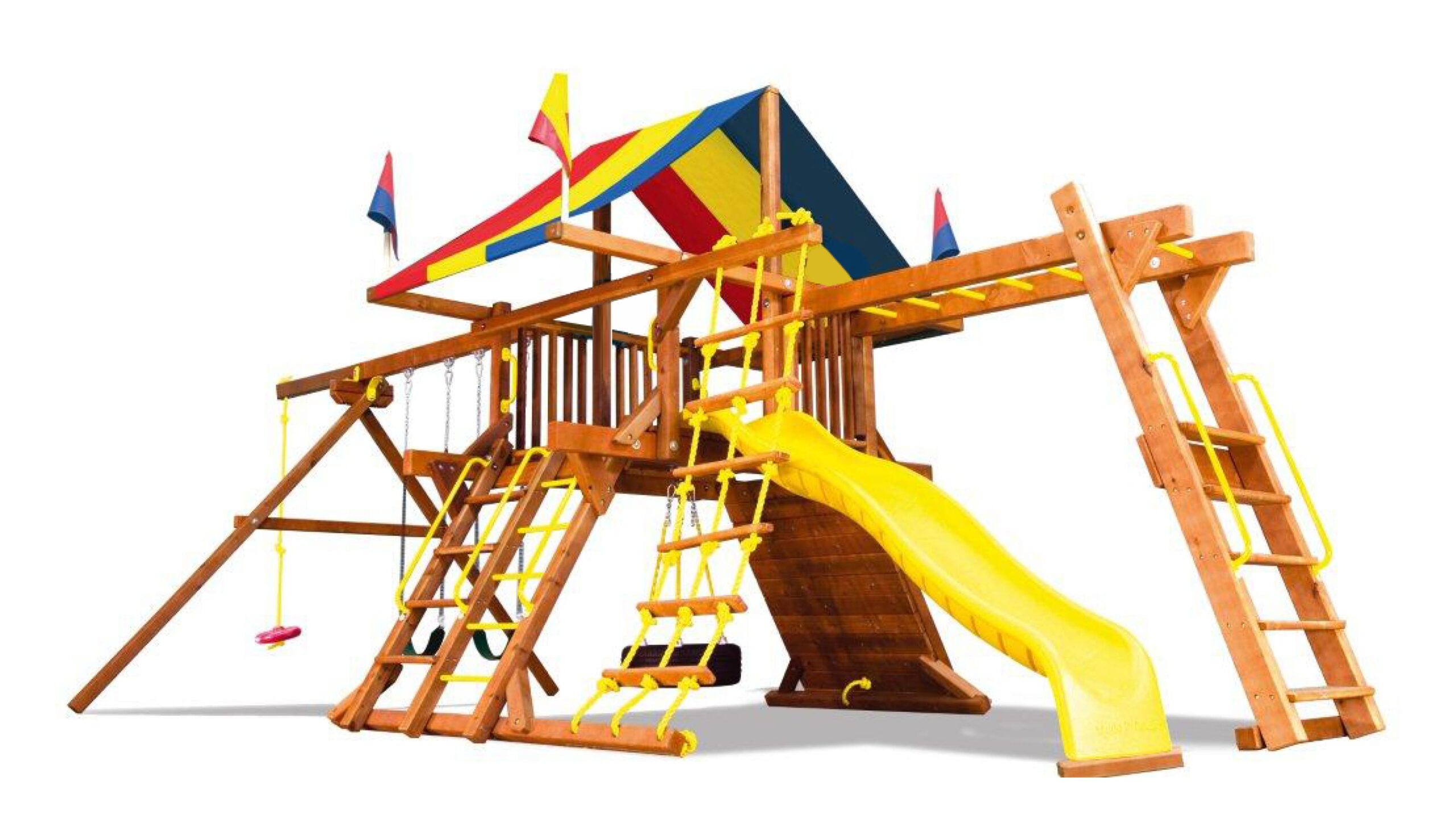 Цельный брус американского и канадского кедра, прошедший десятиступенчатую термообработку фирменными влагоустойчивыми антисептиками. Пластик первой категории качества, нетоксичный, не имеет неприятного запаха и полностью безопасен для детей. Металлические цепи покрыты винилом в местах, где ребёнок может схватить их руками. Бинокли, телескопы и другие аксессуары детализированы и также сделаны из прочного пластика.