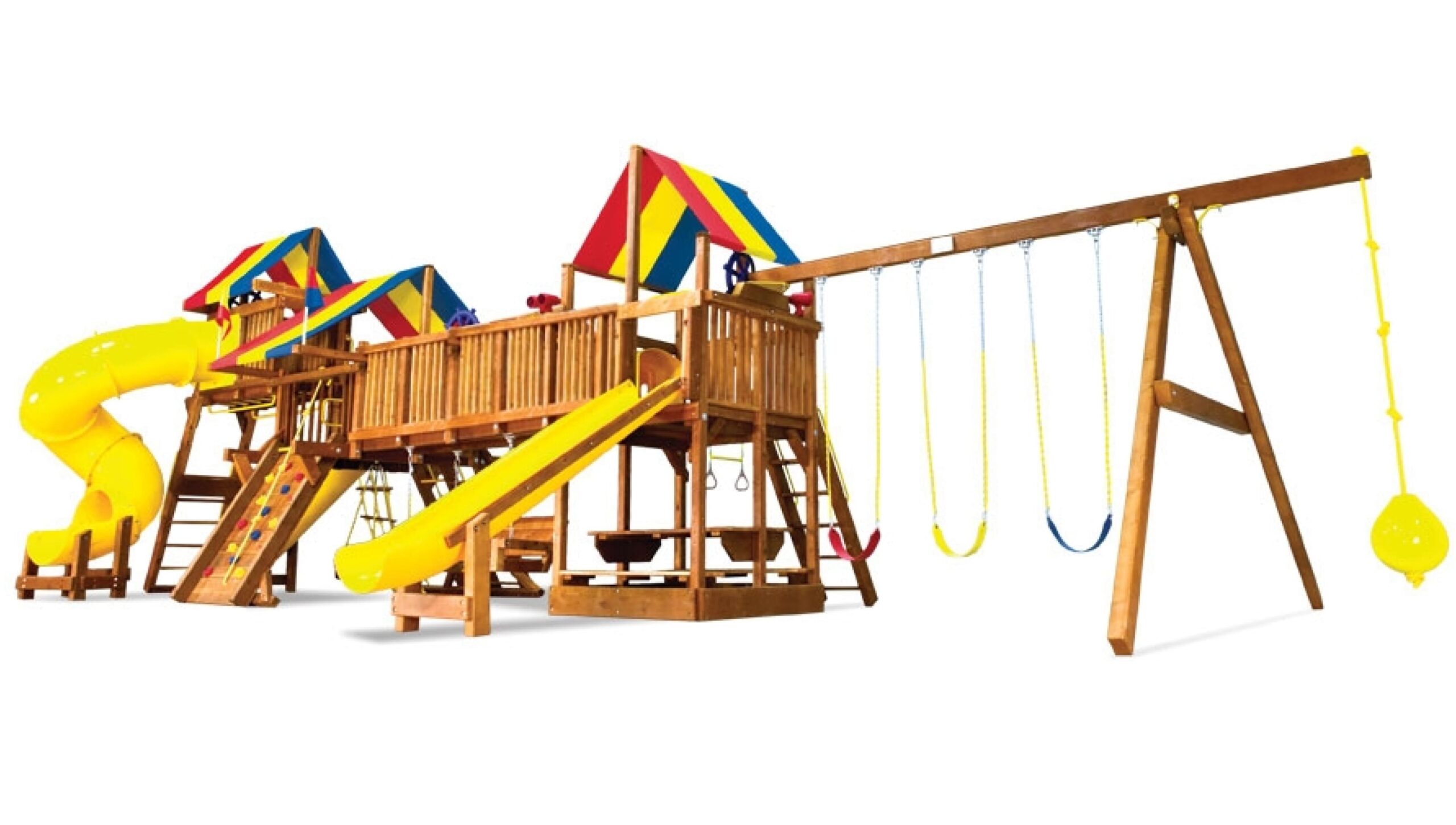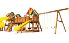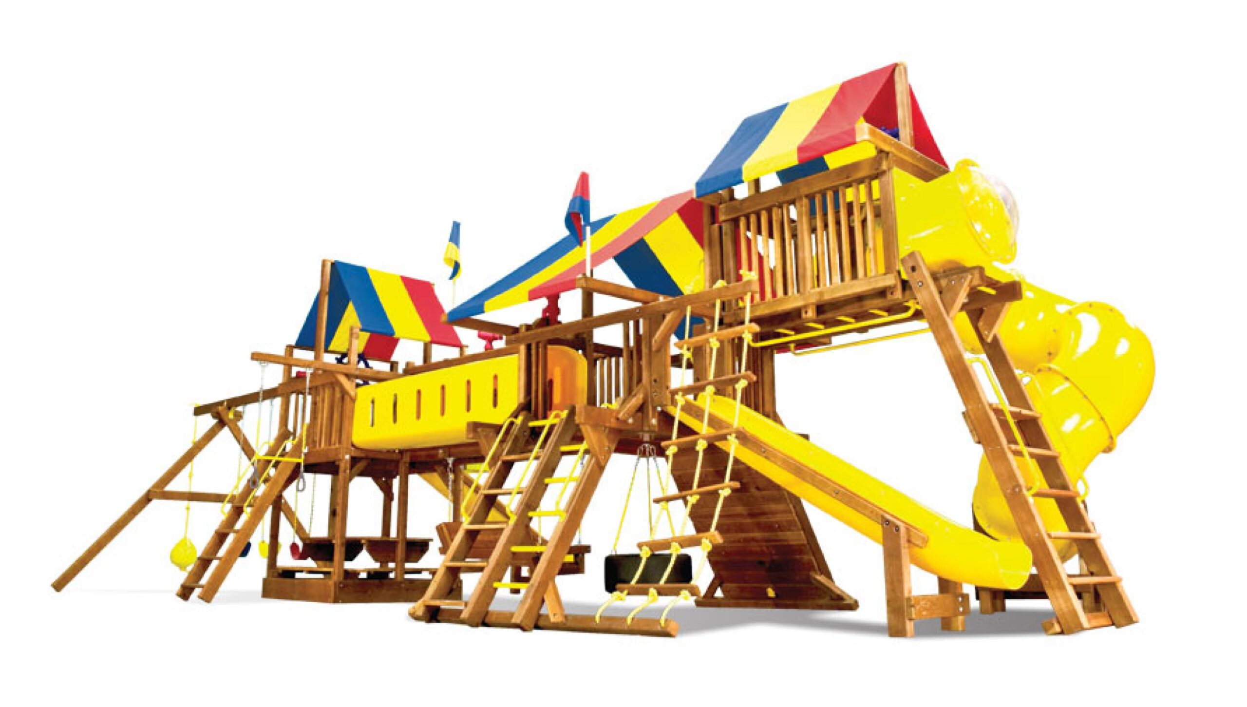Детская площадка Саншайн Дабл Вамми Тент — это одно из лучших решений, придуманных в мировом производстве детского игрового оборудования. Дабл Вамми это сразу две площадки (формы Кастл и Клубхаус) соединенным между собой деревянным мостом и туннелем из плотного пластика. При этом данный комплекс имеет оптимальные габаритные размеры, которые позволяют разместить его на сравнительно небольшом участке. Прямые горки или горки с двойной волной. Саншайн Дабл Вамми выбирают застройщики, архитекторы, компании по благоустройству парков. Также данный комплекс подойдет для установки на территории частного загородного дома.