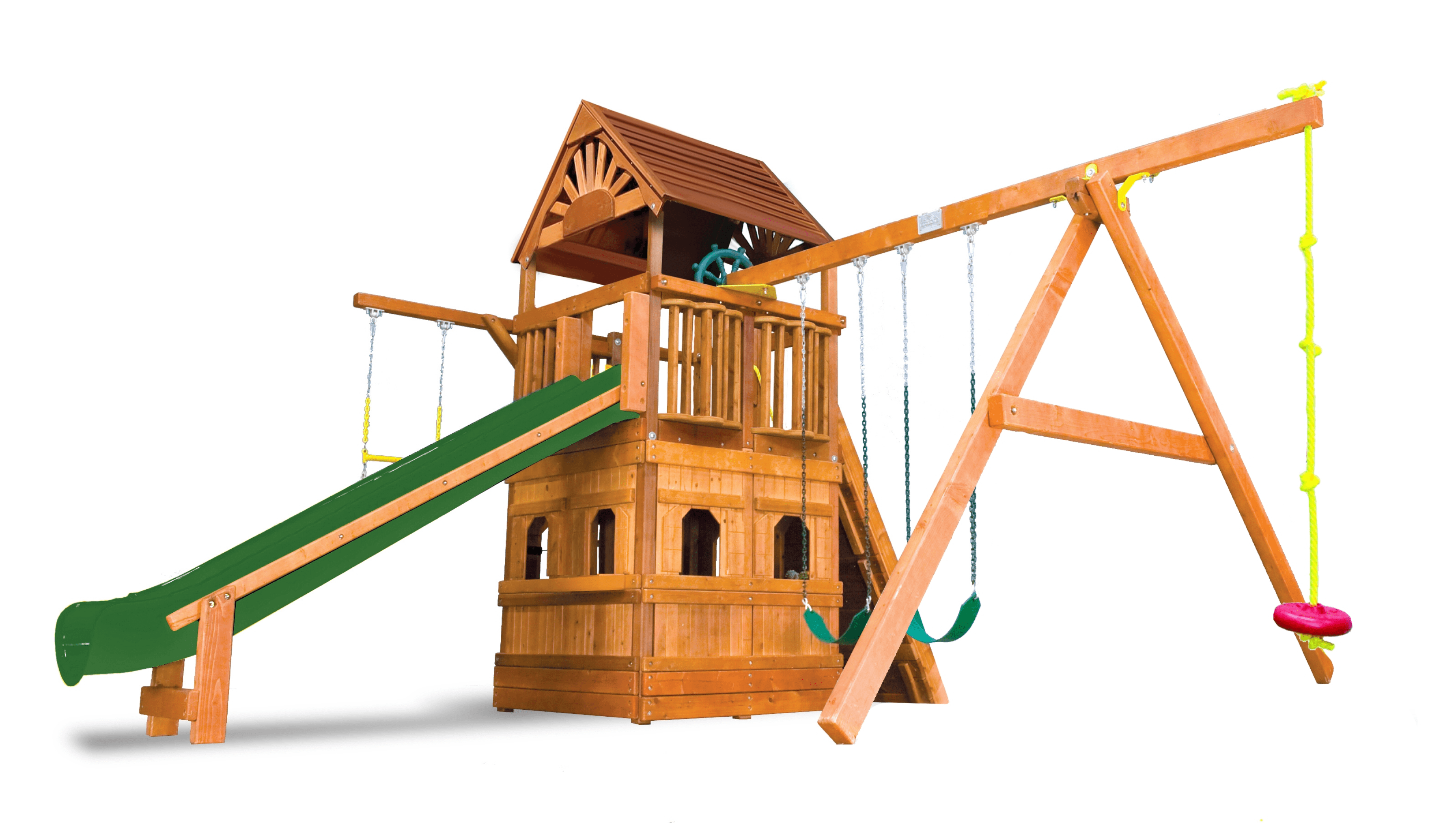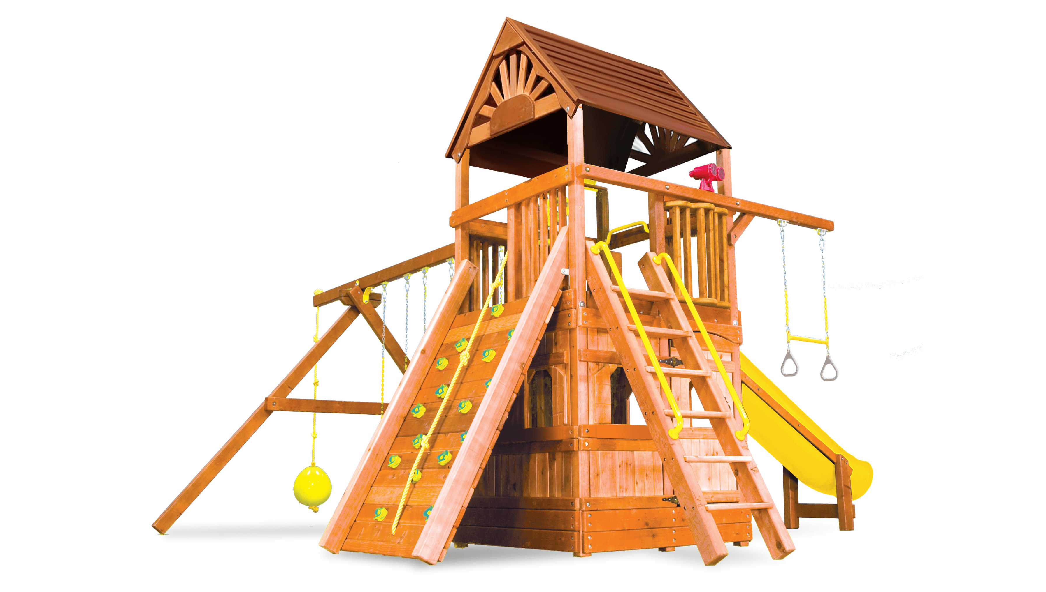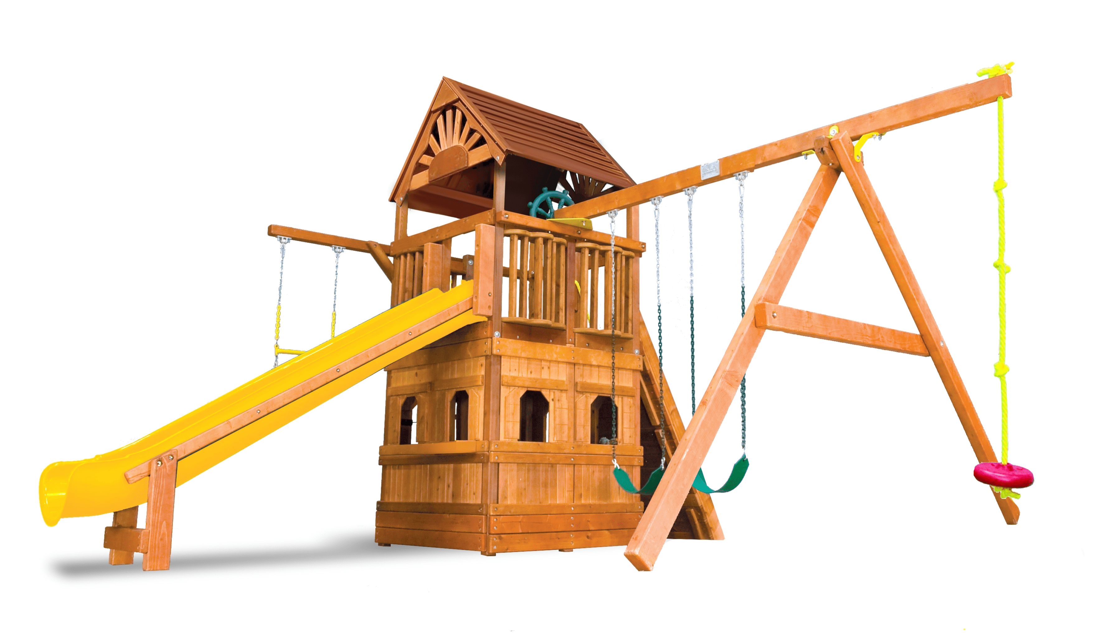Цельный брус американского и канадского кедра, прошедший десятиступенчатую термообработку фирменными влагоустойчивыми антисептиками. Пластик первой категории качества, нетоксичный, не имеет неприятного запаха и полностью безопасен для детей. Металлические цепи покрыты винилом в местах, где ребёнок может схватить их руками. Бинокли, телескопы и другие аксессуары детализированы и также сделаны из прочного пластика.