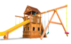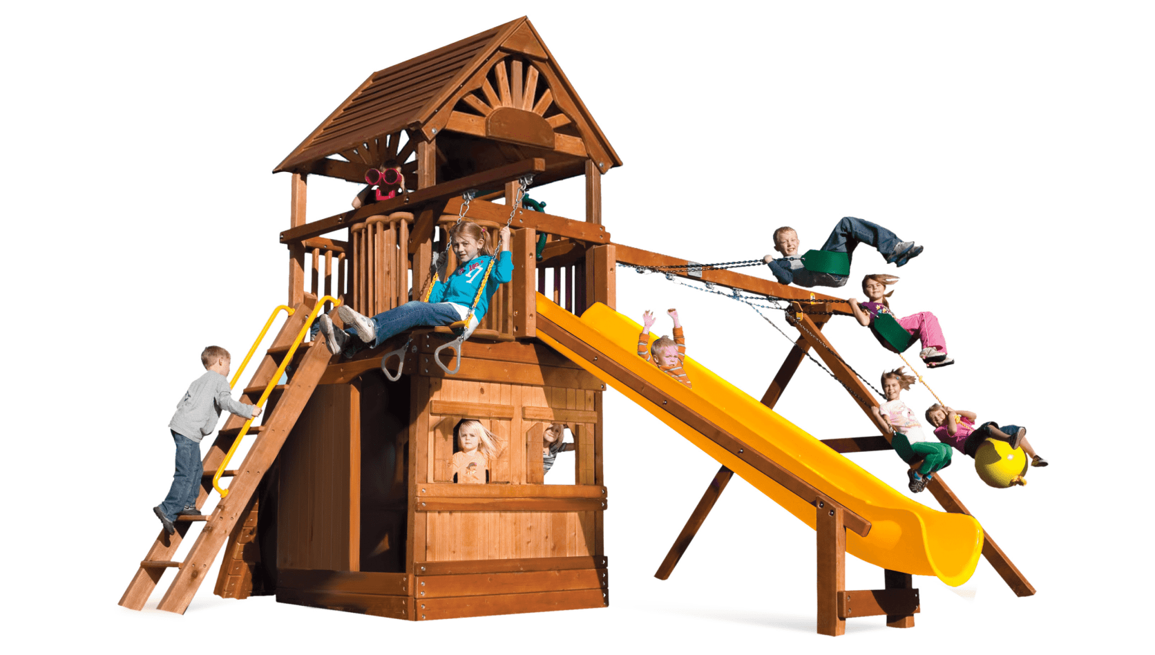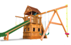 Саншайн Клубхаус II Закрытый Домик ДК это стильная площадка серии Клубхаус. Ее особенность это закрытый домик, в котором дети могут играться, прятаться от жары или дождя. Здесь также есть прямая горка, 2 качели лямки, шар на канате, качели тарзанка и смотровая вышка со штурвалом и биноклем. Этот комплекс отличный выбор для небольших участков или парков с небольшой поверхностью под детскую площадку.