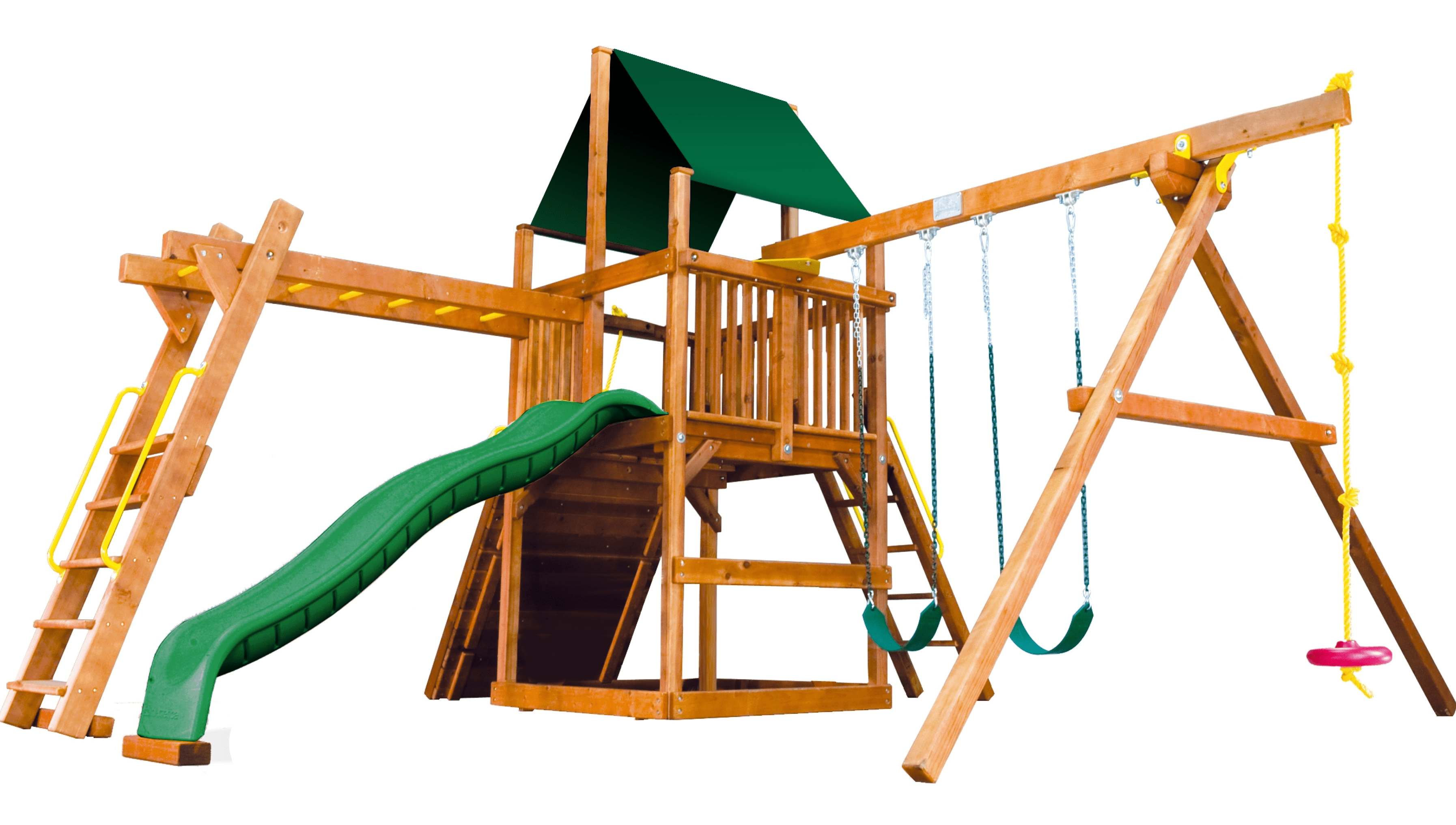 Цельный брус американского и канадского кедра, прошедший десятиступенчатую термообработку фирменными влагоустойчивыми антисептиками. Пластик первой категории качества, нетоксичный, не имеет неприятного запаха и полностью безопасен для детей. Металлические цепи покрыты винилом в местах, где ребёнок может схватить их руками. Бинокли, телескопы и другие аксессуары детализированы и также сделаны из прочного пластика.
