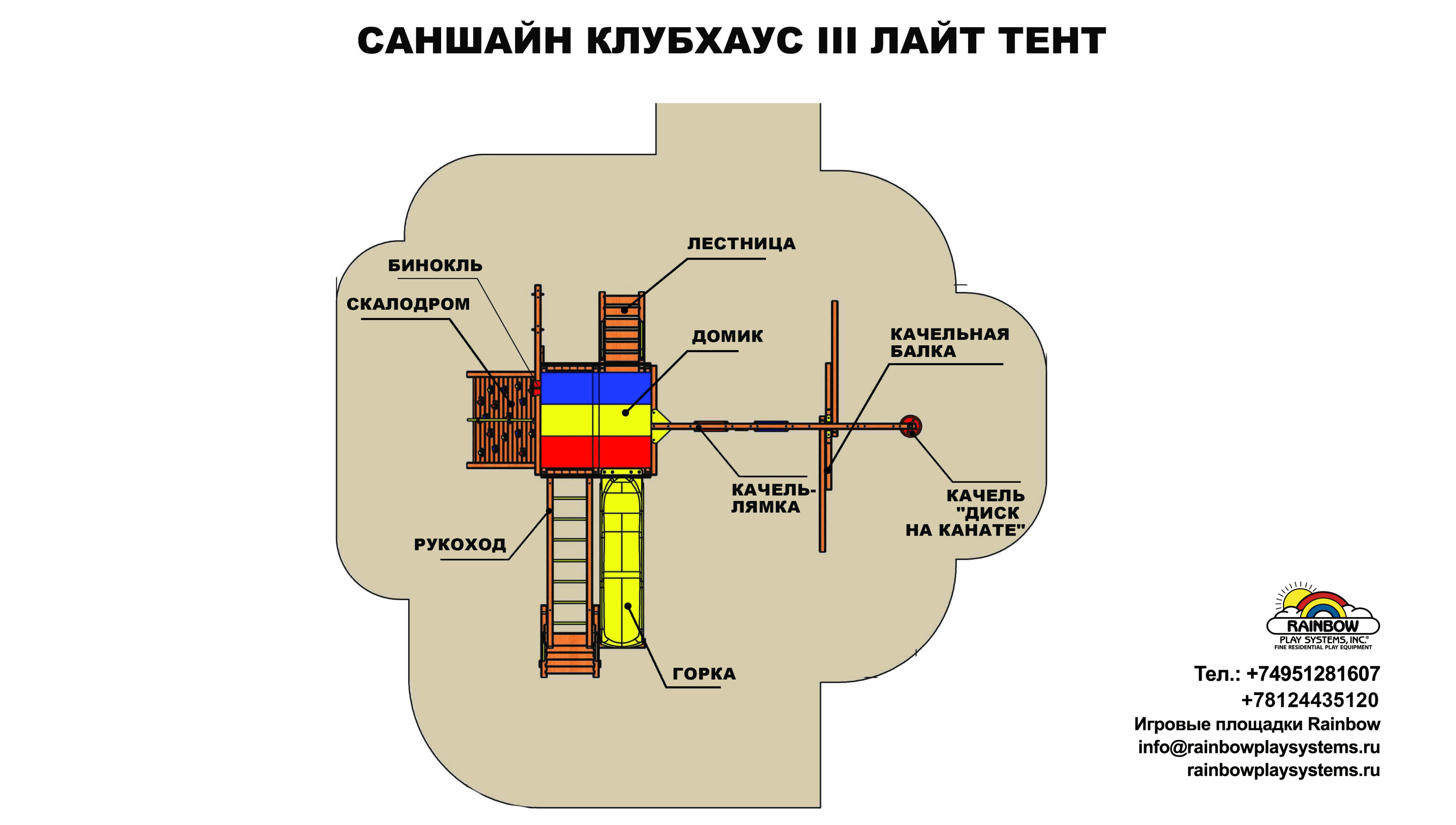 Выполненная из стойких к износу и погодным воздействиям материалов детская площадка Саншайн Клубхаус III Лайт Тент – игровой комплекс «премиум» класса – замечательное решение для любого двора или даже городского сквера. Это базовая комплектация, в которую входят все основные игровые блоки: основание клубхаус, рукоход, скалодром, качельная балка на 3 качели, 3х метровая горка с двойной волной. Это комплекс со временем вы сможете доукомплектовать вторым домиком и спиральной горкой, так как площадки серии Саншайн имеют уникальную возможность расти вместе с вашими детьми! Отличие комплектации Лайт Тент от Делюкс ДК в материале крыши, качелях, отсутствии дополнительных аксессуаров (биноклей, телескопов, столика со скамейками).
