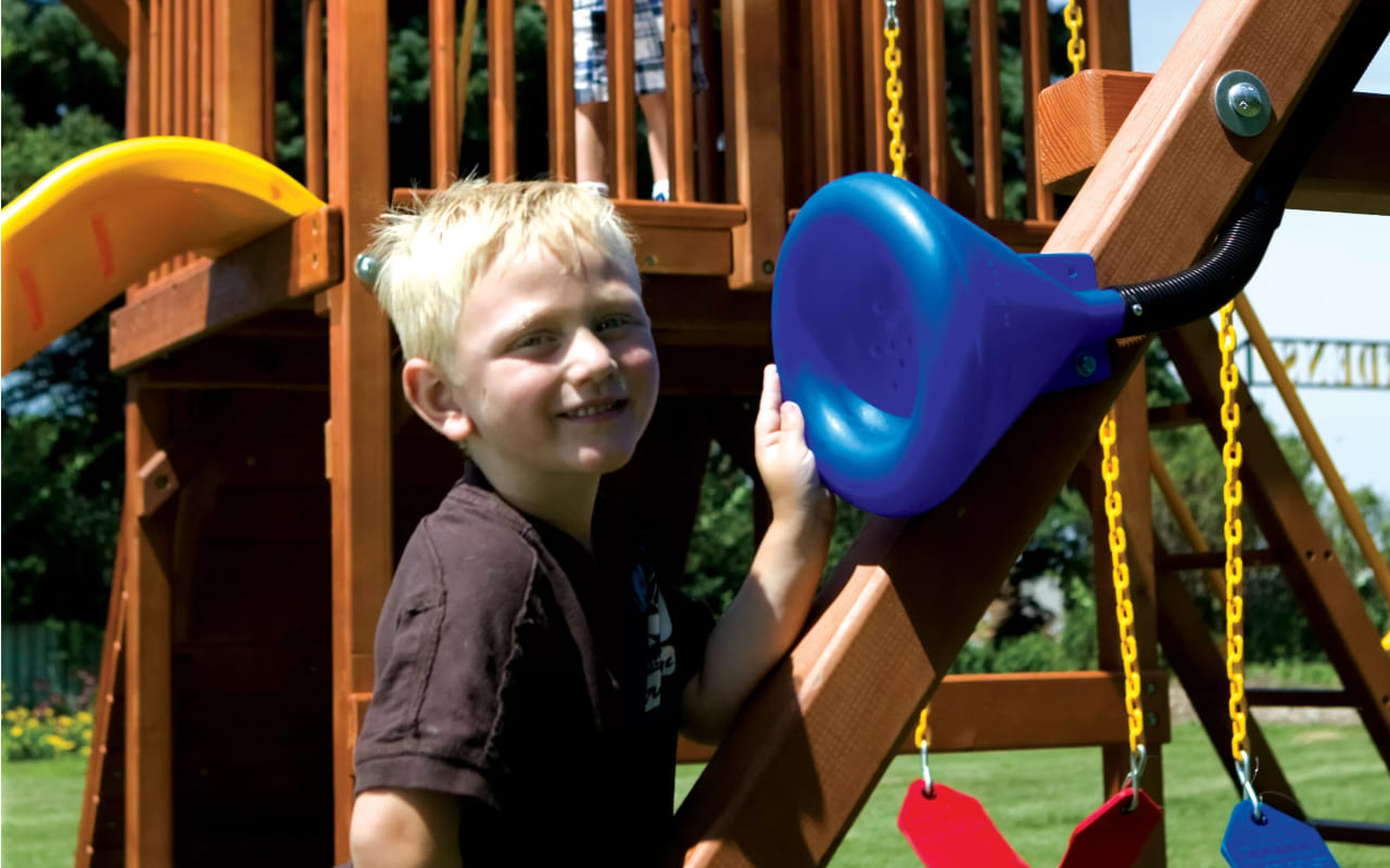 Цельный брус американского и канадского кедра, прошедший десятиступенчатую термообработку фирменными влагоустойчивыми антисептиками. Пластик первой категории качества, нетоксичный, не имеет неприятного запаха и полностью безопасен для детей. Металлические цепи покрыты винилом в местах, где ребёнок может схватить их руками. Бинокли, телескопы и другие аксессуары детализированы и также сделаны из прочного пластика.Способы оплаты