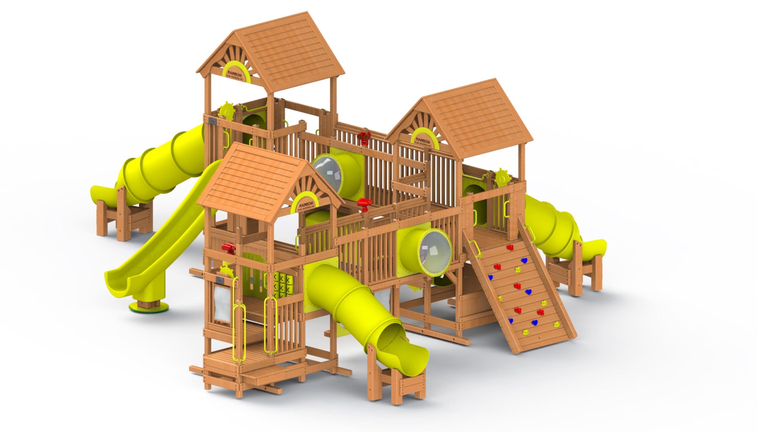 В ходе изготовления экологичных детских комплексов используются материалы, не содержащие вредных для организма человека химических компонентов. Натуральное дерево без покрытия краской или лаком вовсе безопасно, тактильно достаточно приятное. Играть в уютном деревянном домике либо замке удобно в знойную летнюю жару и зимние холода, поскольку древесина не подвержена сильному нагреву или охлаждению.